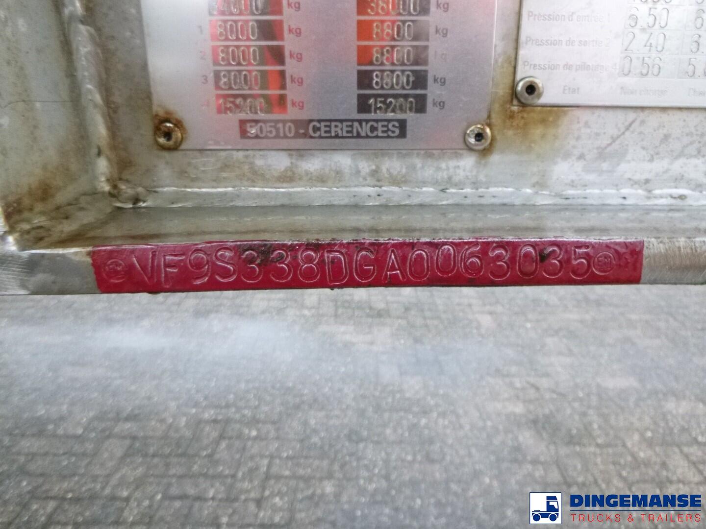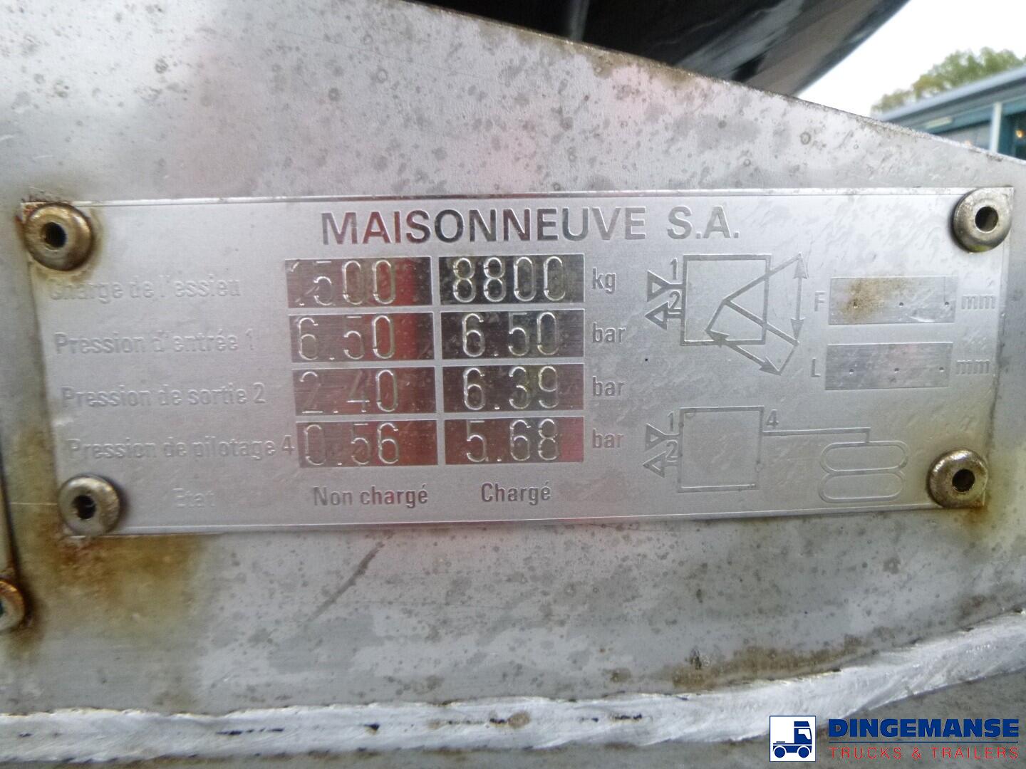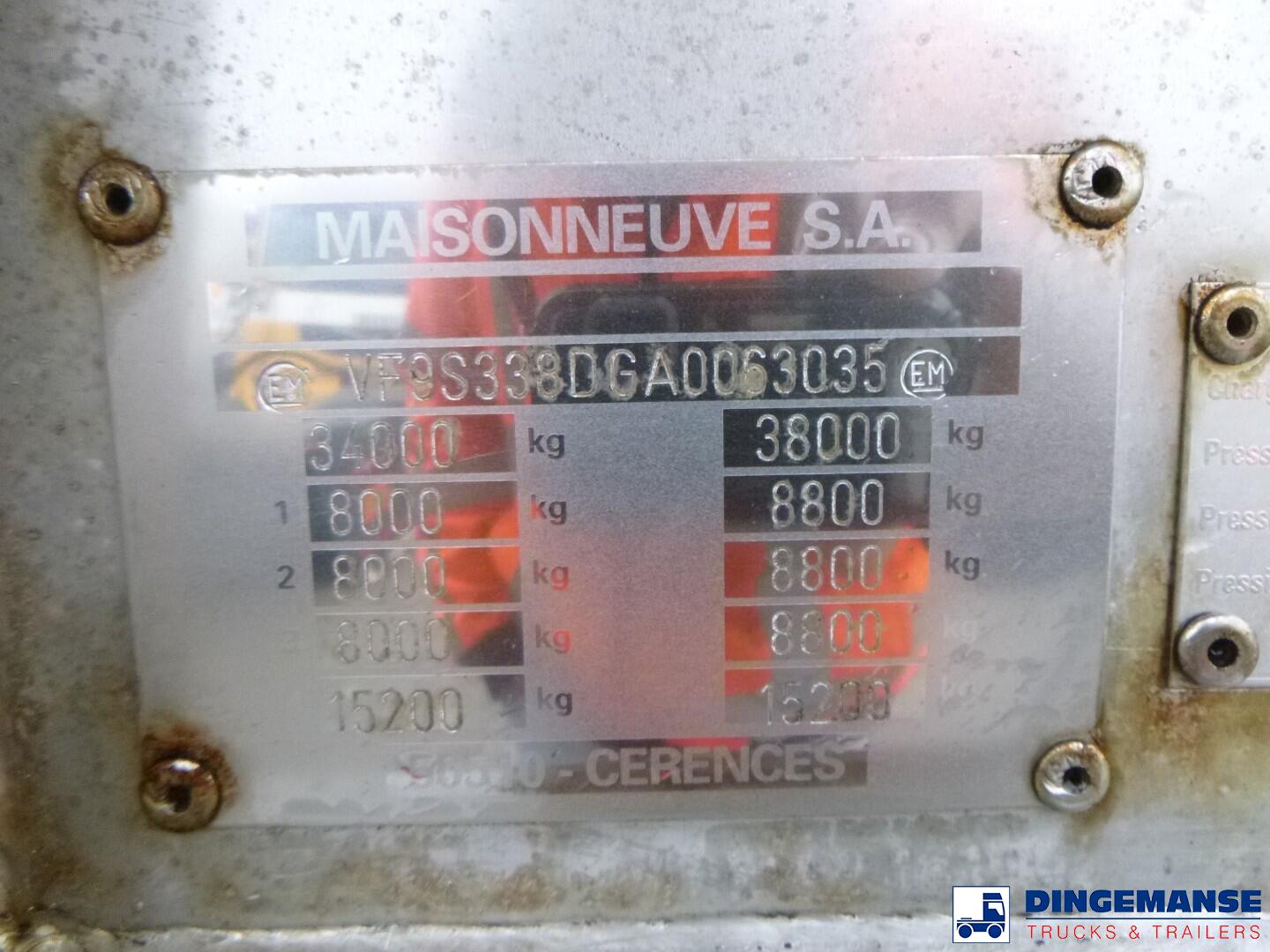 Insulated Maisonneuve stainless steel bitumen tank, Capacity 35170 liters, 1 Compartment, Tank material code EN 10028.7, Test pressure 2.65 bar, Max working pressure 2.0 bar // Air suspension, Lift axle, Alloy wheels, Mercedes axles, ABS, Disc brakes, Shipment dimensions 1185x250x360 cm