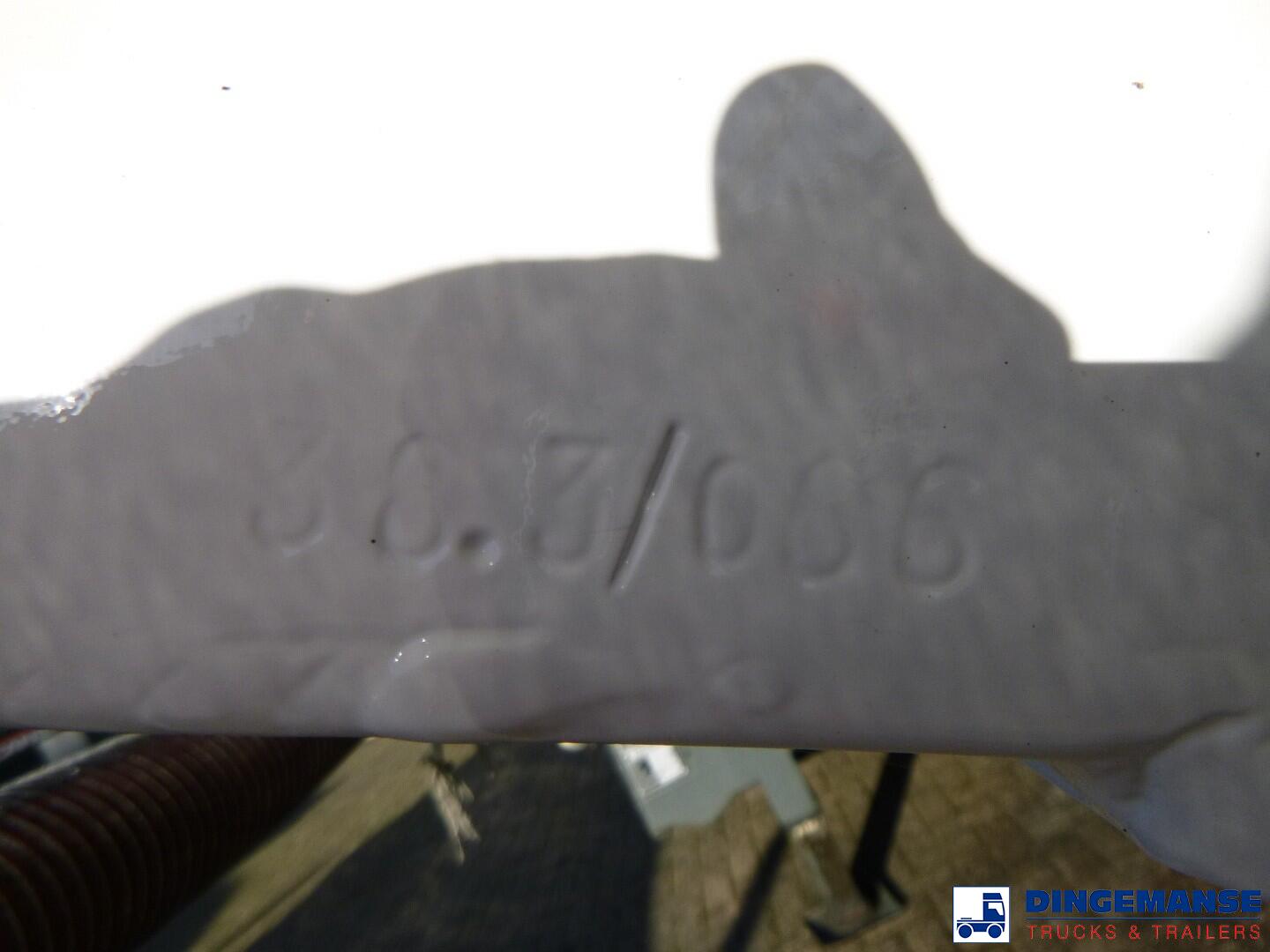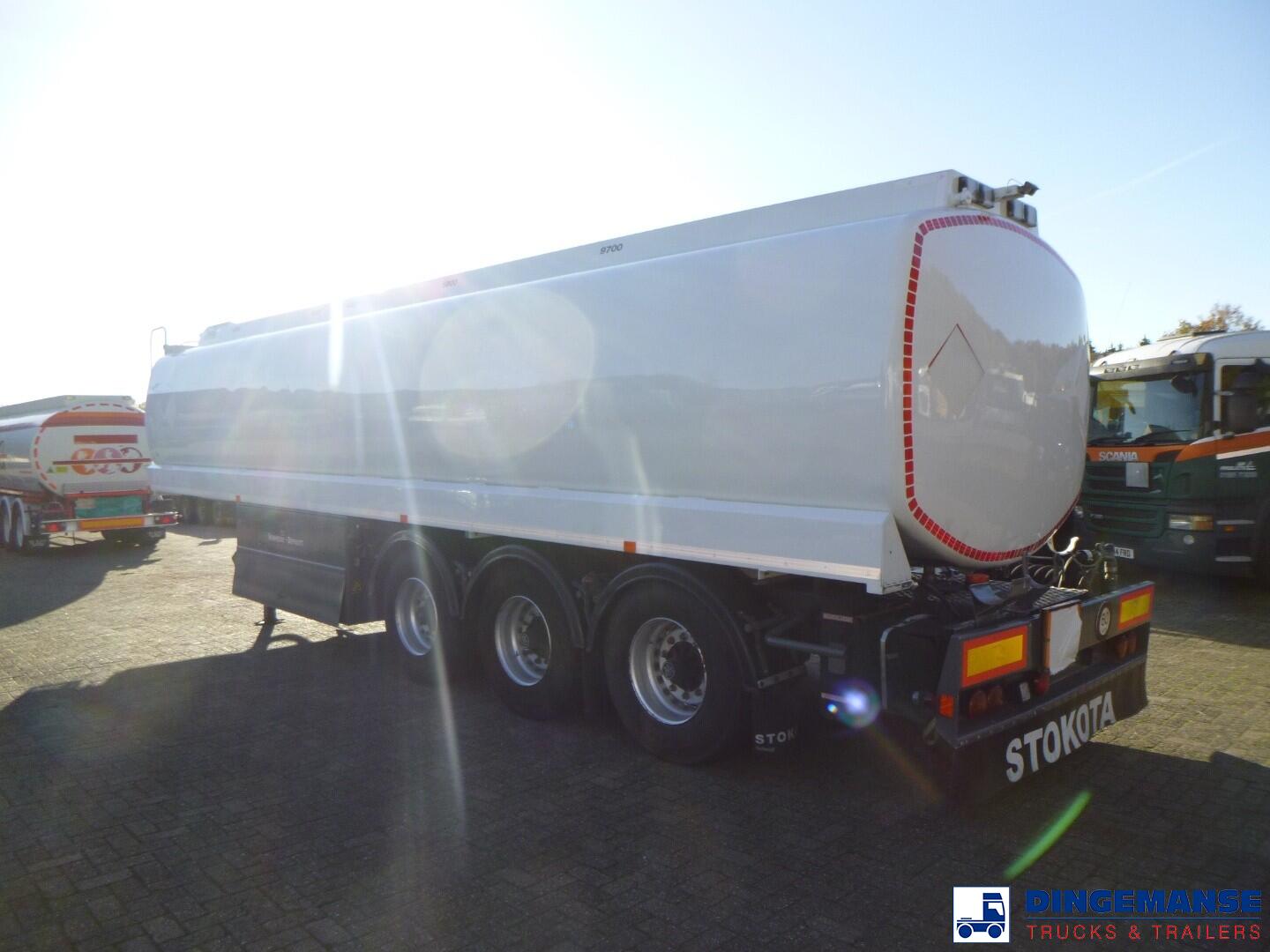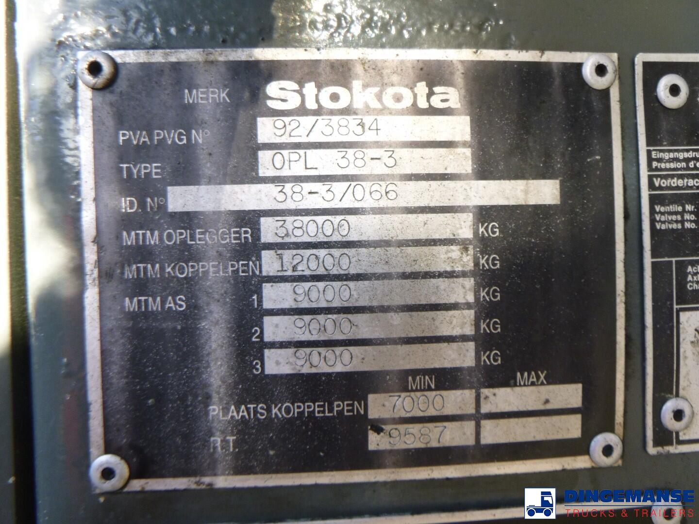 Stokota aluminium fuel tank, Capacity 38700 liters, 5 Compartments (14200; 5000; 4000; 5800; 9700), Year of construction 1994, Tank material code Al Mg 4,5 Mn, Test pressure 0.38 bar, Max working pressure 0.16 bar, Hose reel, Hydraulic pump, Digital counter, Vapour recovery, Overload sensor // Air suspension, BPW axles, Drum brakes, ABS, Shipment dimensions 1110x250x360 cm