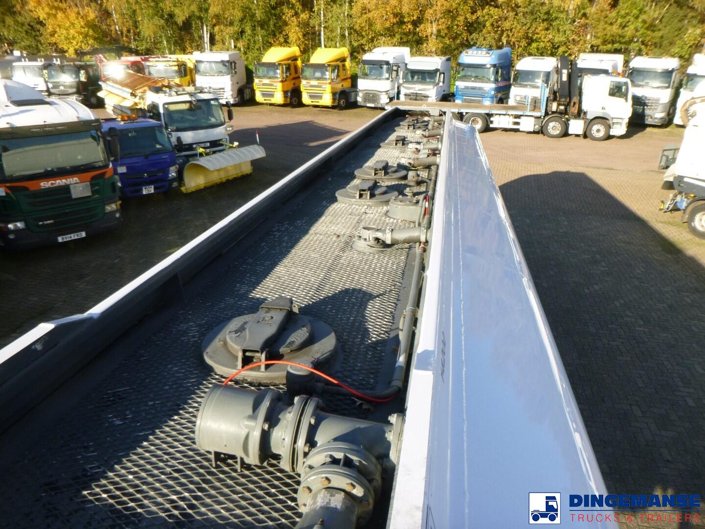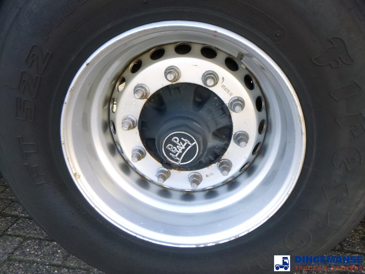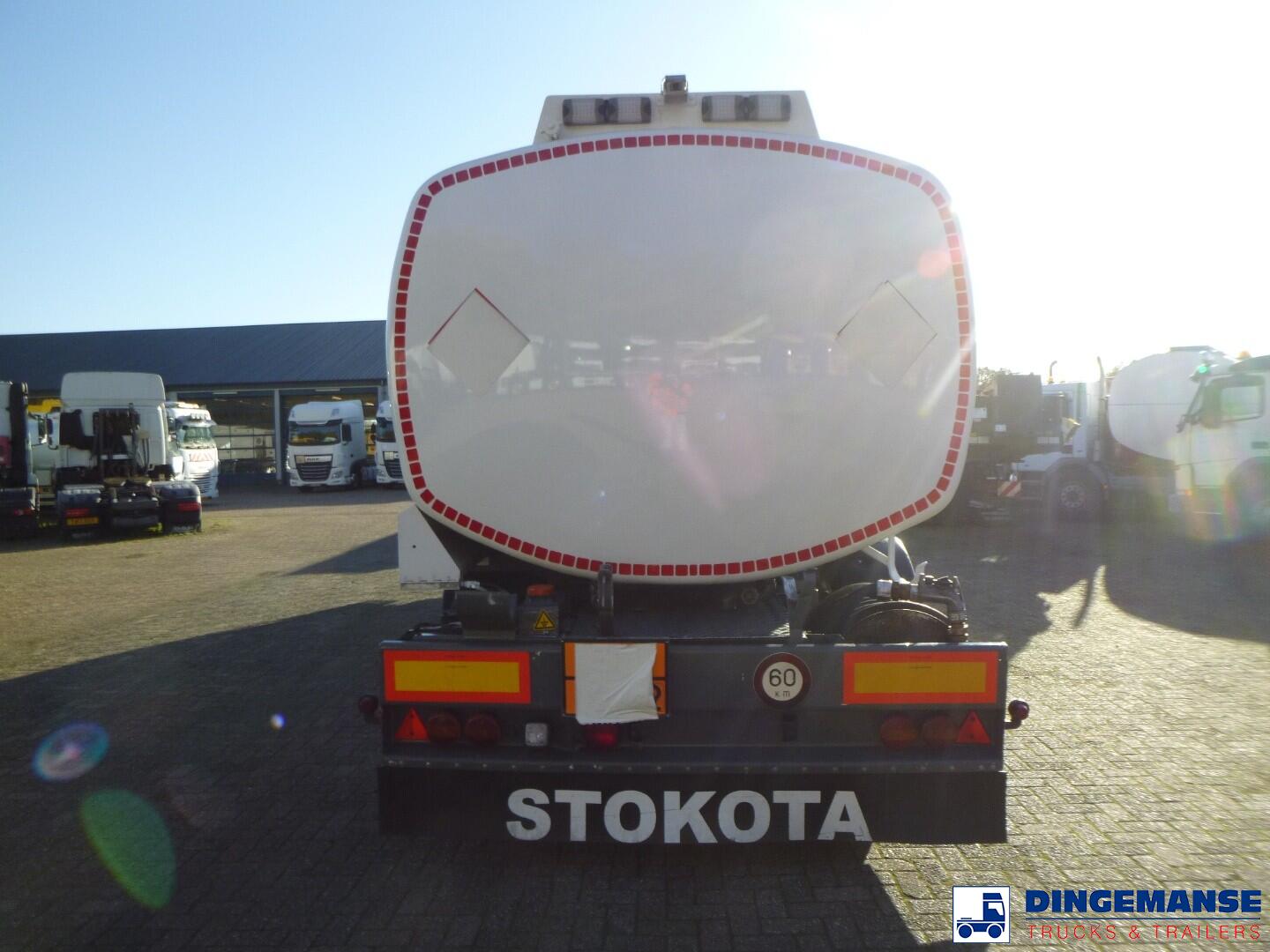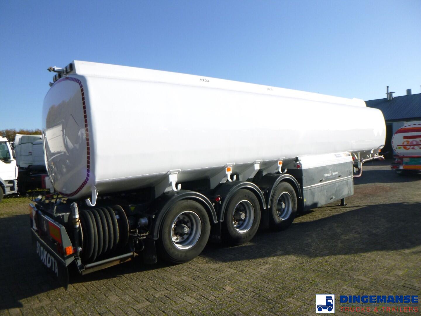 Stokota aluminium fuel tank, Capacity 38700 liters, 5 Compartments (14200; 5000; 4000; 5800; 9700), Year of construction 1994, Tank material code Al Mg 4,5 Mn, Test pressure 0.38 bar, Max working pressure 0.16 bar, Hose reel, Hydraulic pump, Digital counter, Vapour recovery, Overload sensor // Air suspension, BPW axles, Drum brakes, ABS, Shipment dimensions 1110x250x360 cm