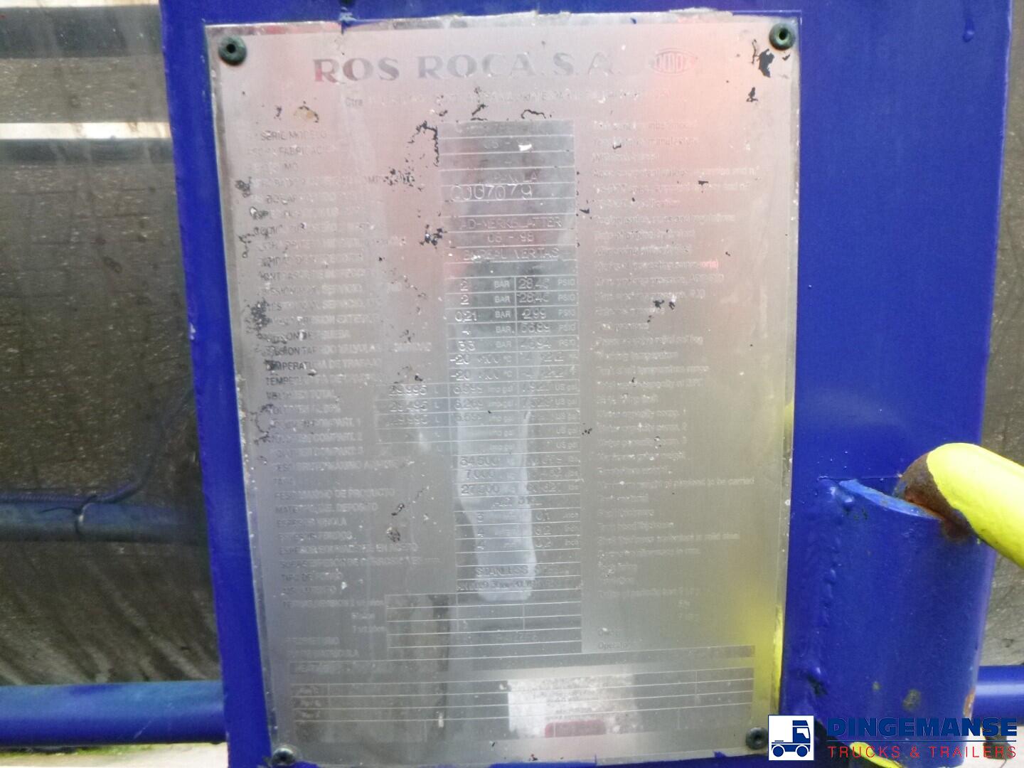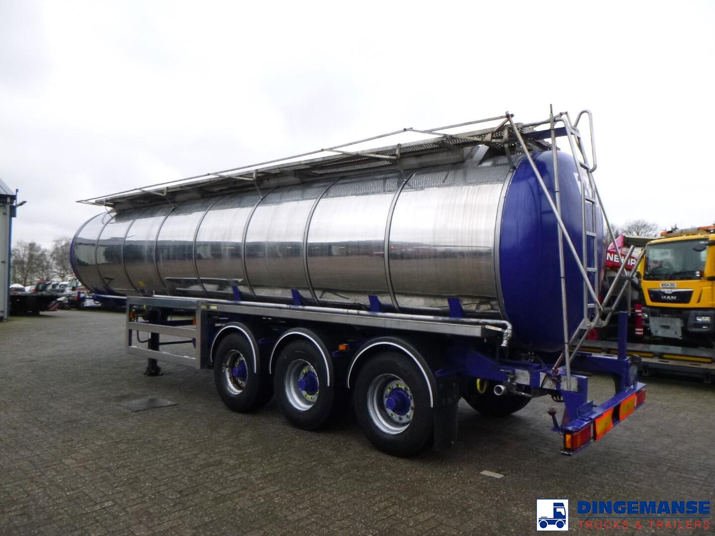 Insulated stainless steel (inox) chemical tank, Capacity 30000 liters, 1 Compartment, Year of construction 1998, Test pressure 4.0 bar, Max working pressure 2.0 bar, Tank material code Aisi 316 L, Air suspension, Drum brakes, ABS, Ror axles, Shipment dimensions 1140x250x360 cm