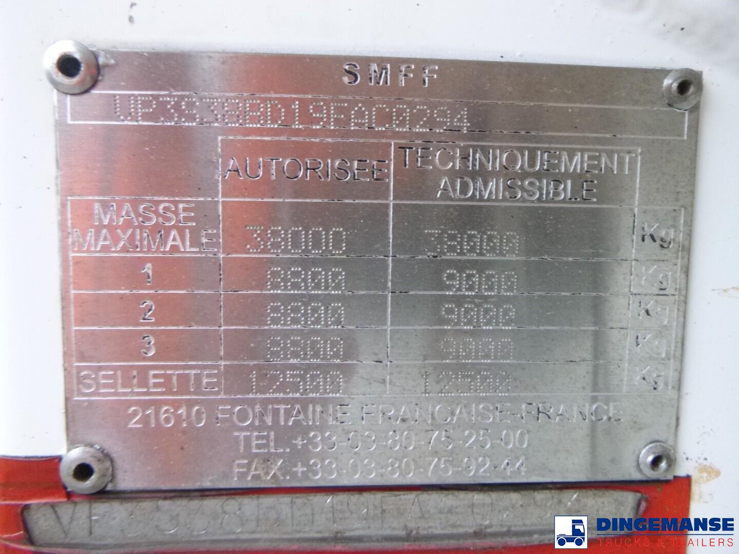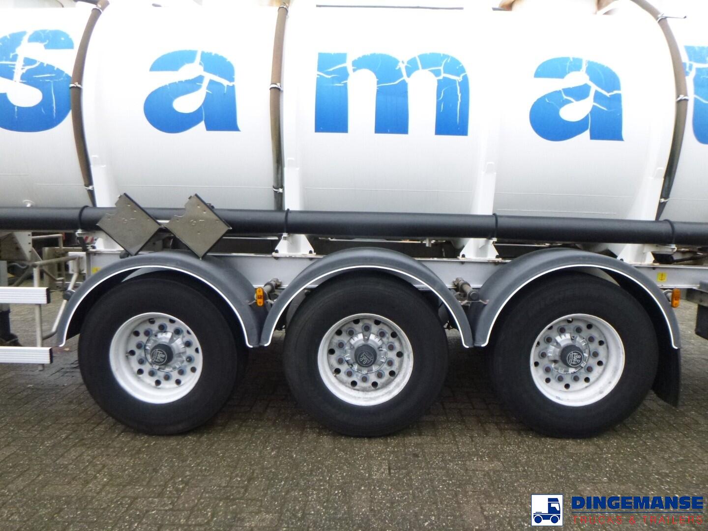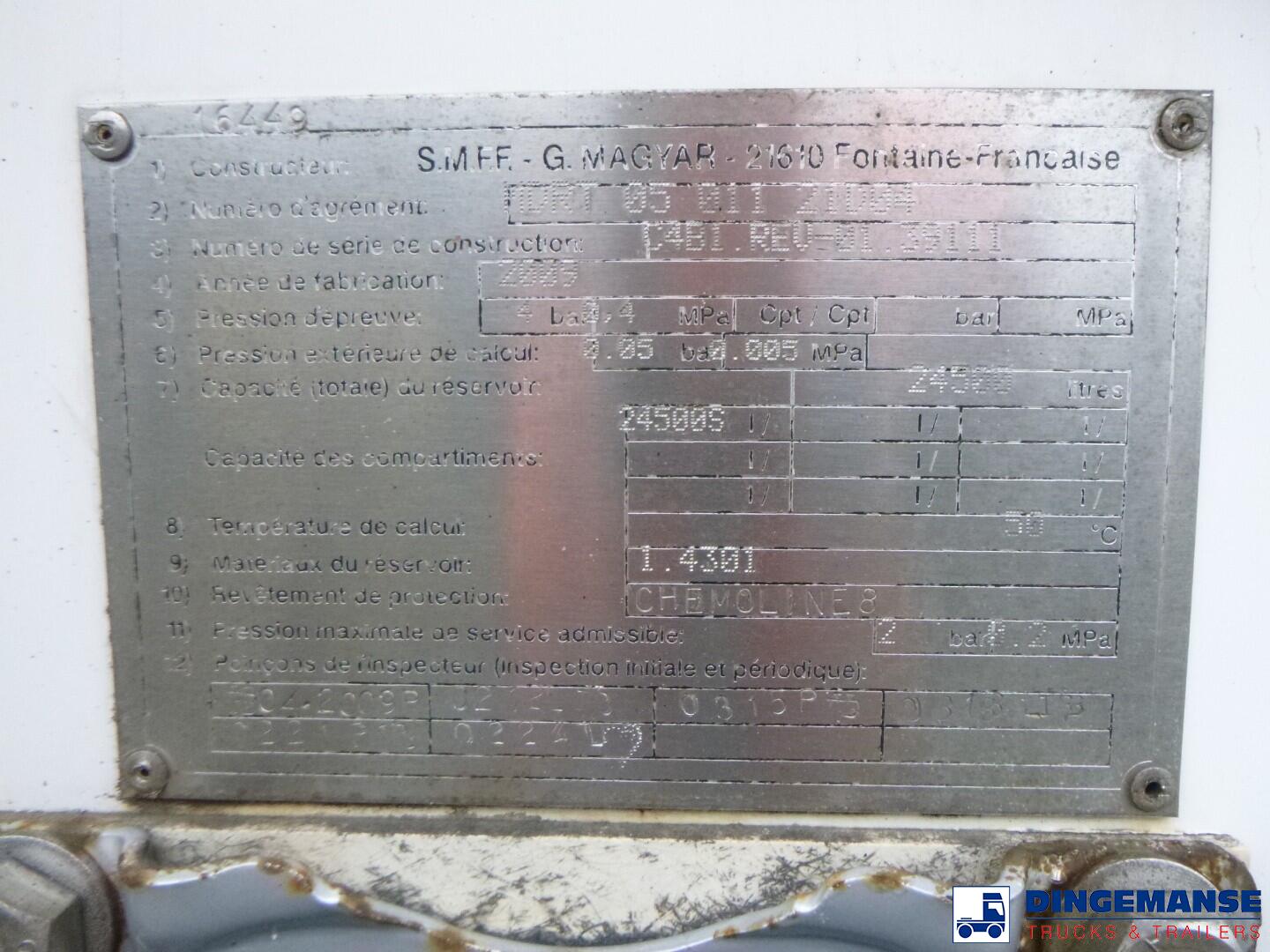 Stainless steel (inox) chemical acid tank, Capacity 24500 liters, 1 compartment, Year of construction 2009, Chemoline 8 interior coating, Test pressure 4.0 bar, Max working pressure 2.0 bar, Air suspension, BPW Eco Plus axles, Disc brakes, Lift axle, ABS, Alloy wheels, Shipment dimensions 1040x250x360 cm