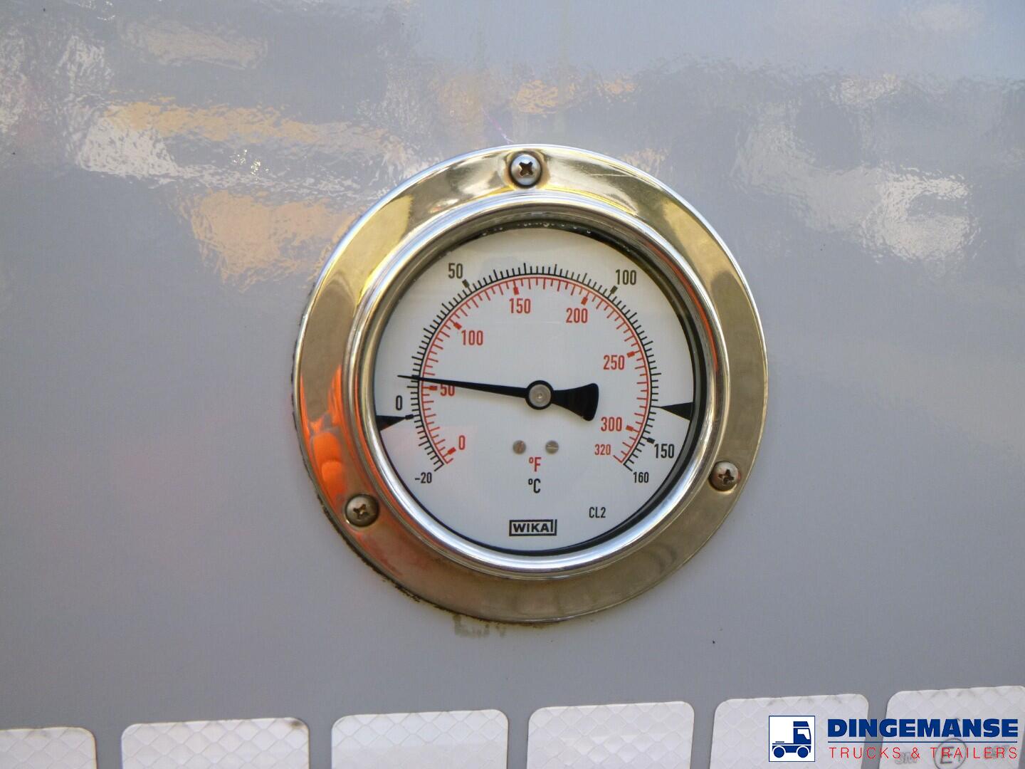 Insulated stainless steel chemical tank, Capacity 37500 liters, 1 Compartment, Tank material code 1.4404 EN 10028-7, Steam and liquid heating, Test pressure 4.0 bar, Max working pressure 2.6 bar, Year of construction 2014, Air suspension, SAF axles, Disc brakes, ABS, Alloy wheels, Shipment dimensions 1080x250x360 cm
