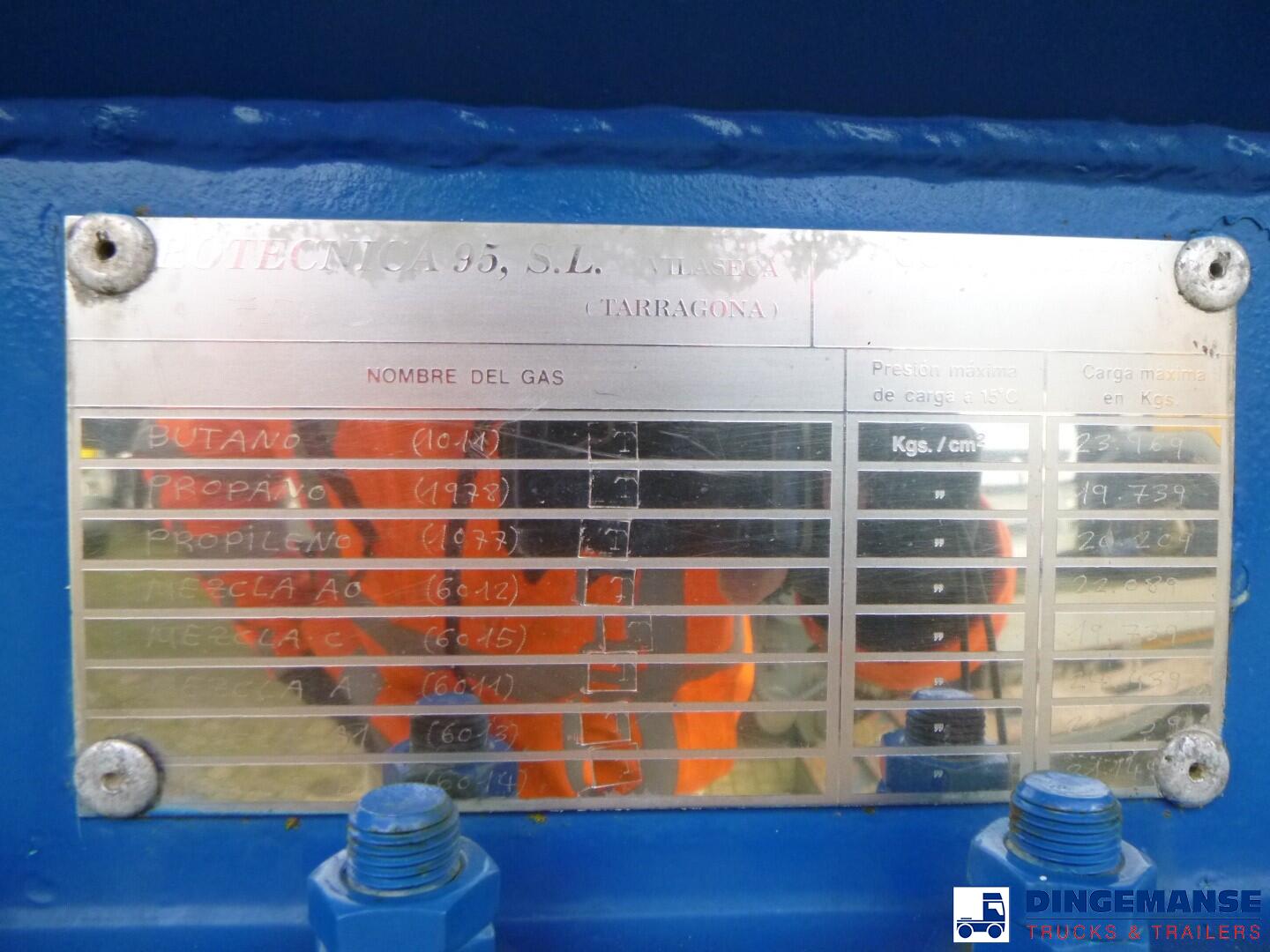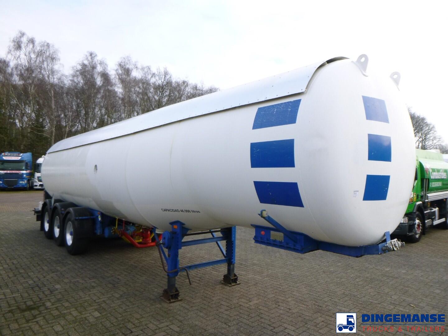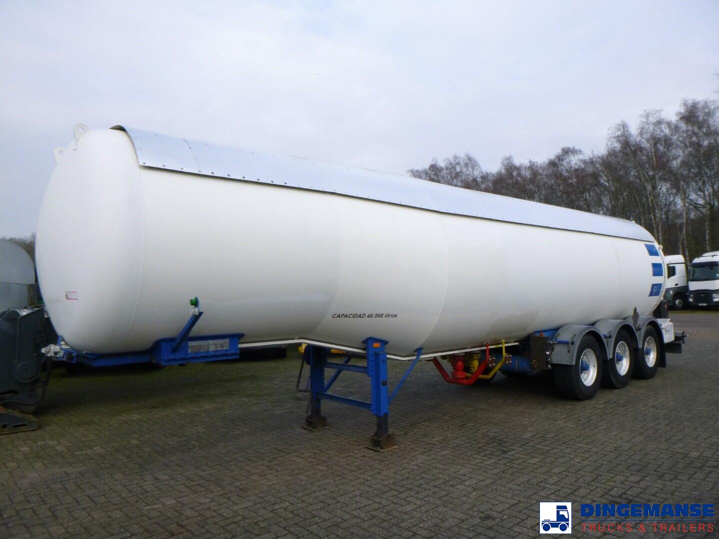 Steel gas (LPG) tank, Capacity 46998 liters, 1 compartment, Test pressure 26.0 bar, Max working pressure 18.0 bar, Year of construction 1991, Air suspension, Drum brakes, BPW Eco axles, ABS, Shipment dimensions 1210x250x370 cm