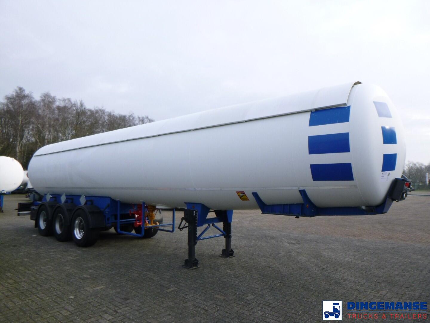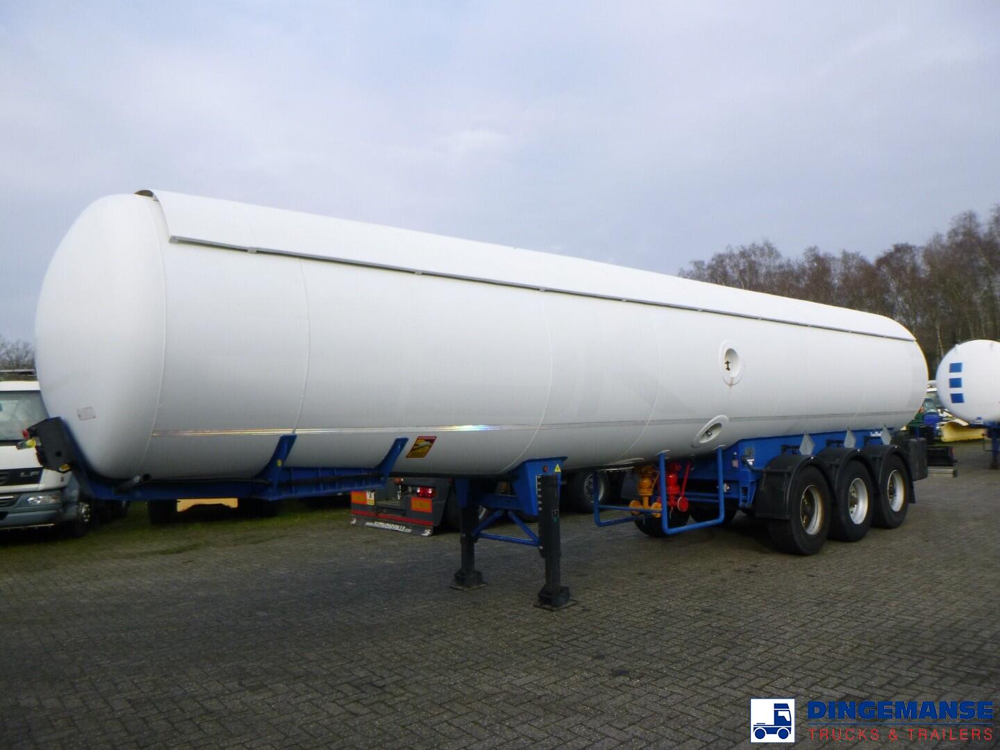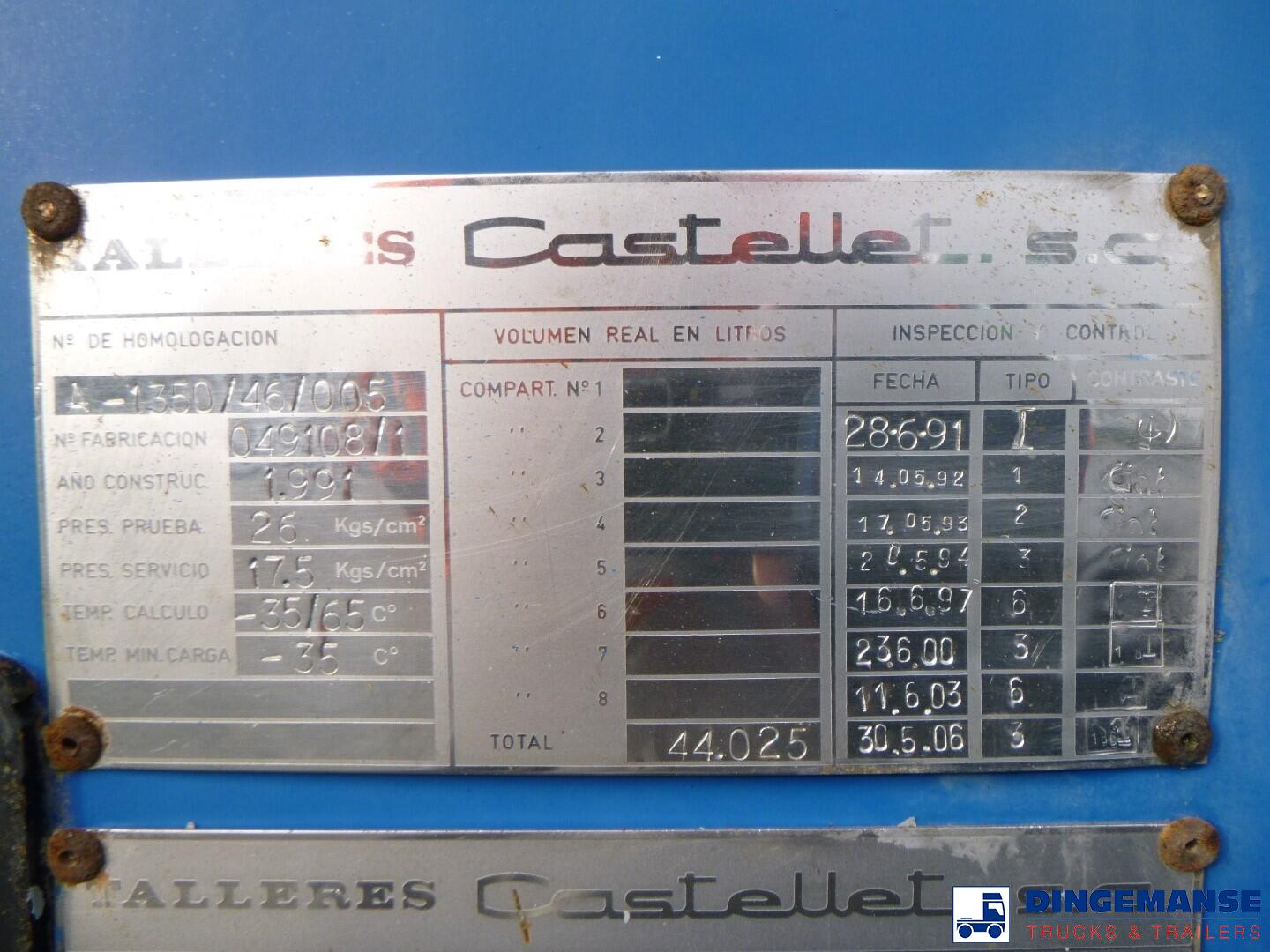 Steel gas (LPG) tank, Capacity 44025 liters, 1 compartment, Test pressure 26.0 bar, Max working pressure 17.5 bar, Year of construction 1991, Spring suspension, Drum brakes, BPW axles, ABS, Shipment dimensions 1260x250x370 cm