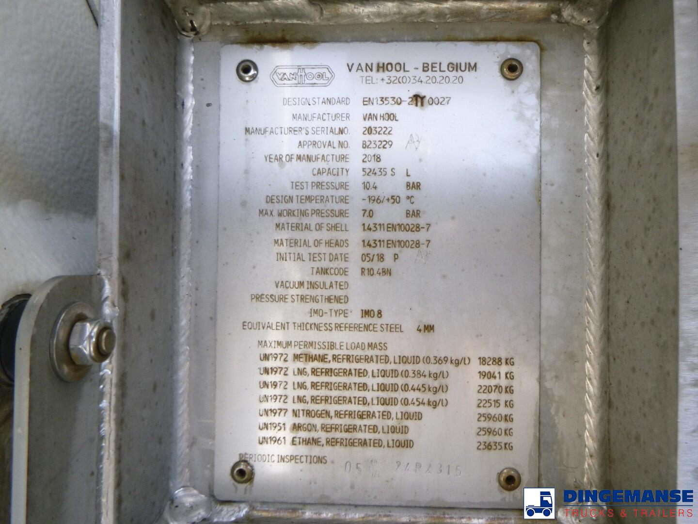 Meer informatie over deze Van Hool Cryogenic tank inox 52,435 m3 / 1 comp / R10.4BN (methane/argon/nitrogen