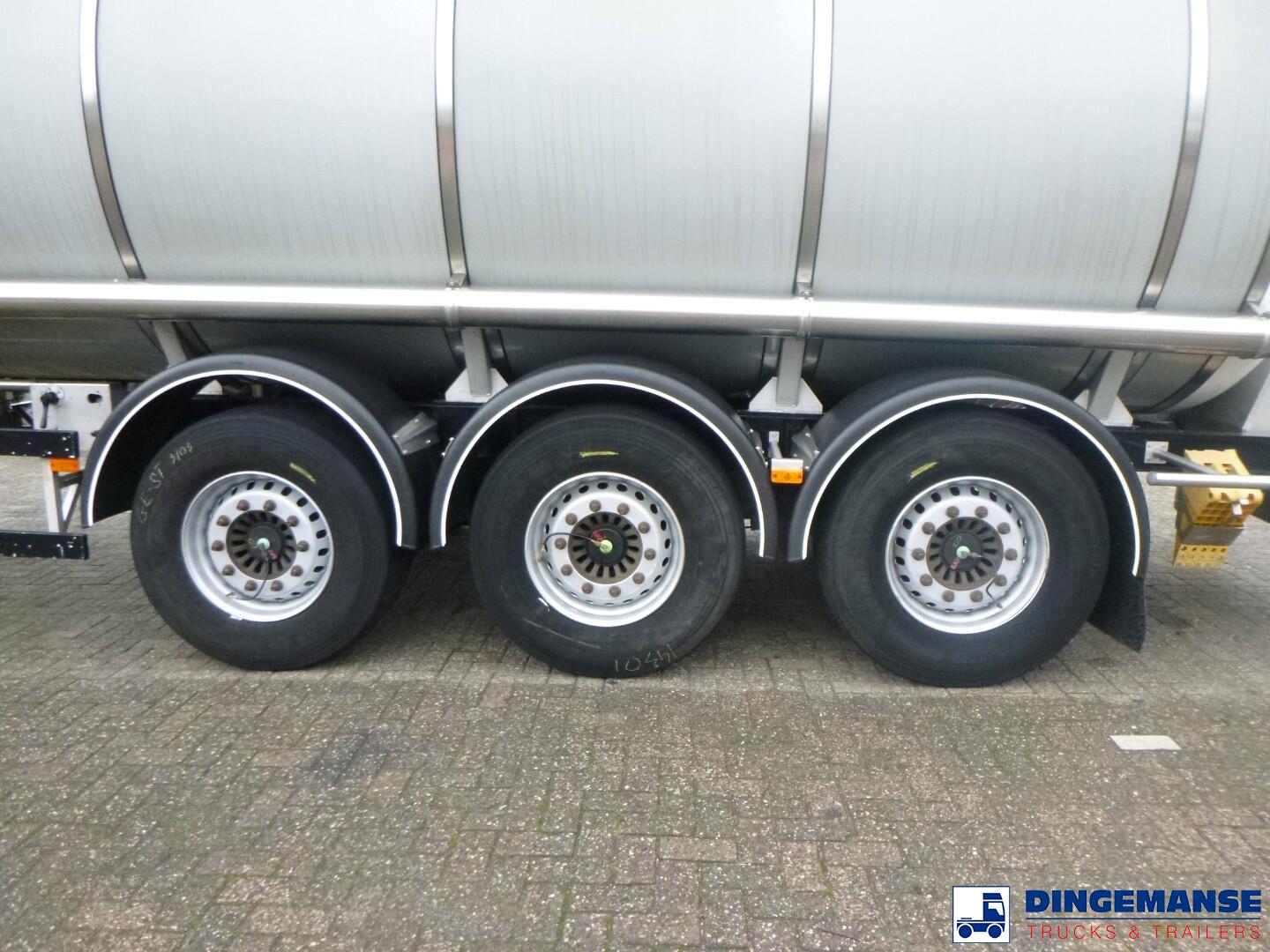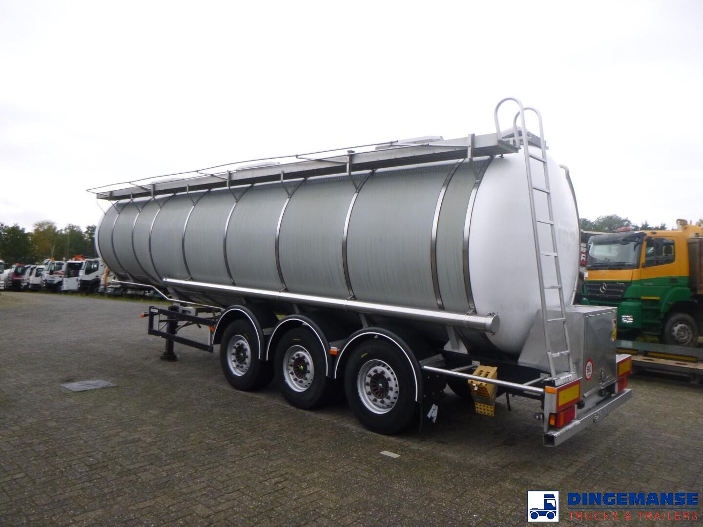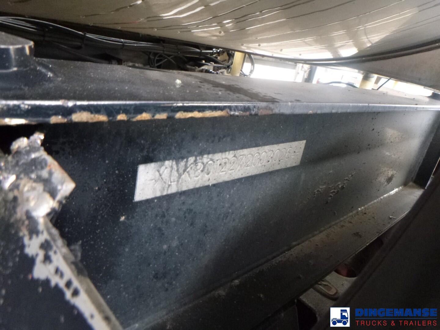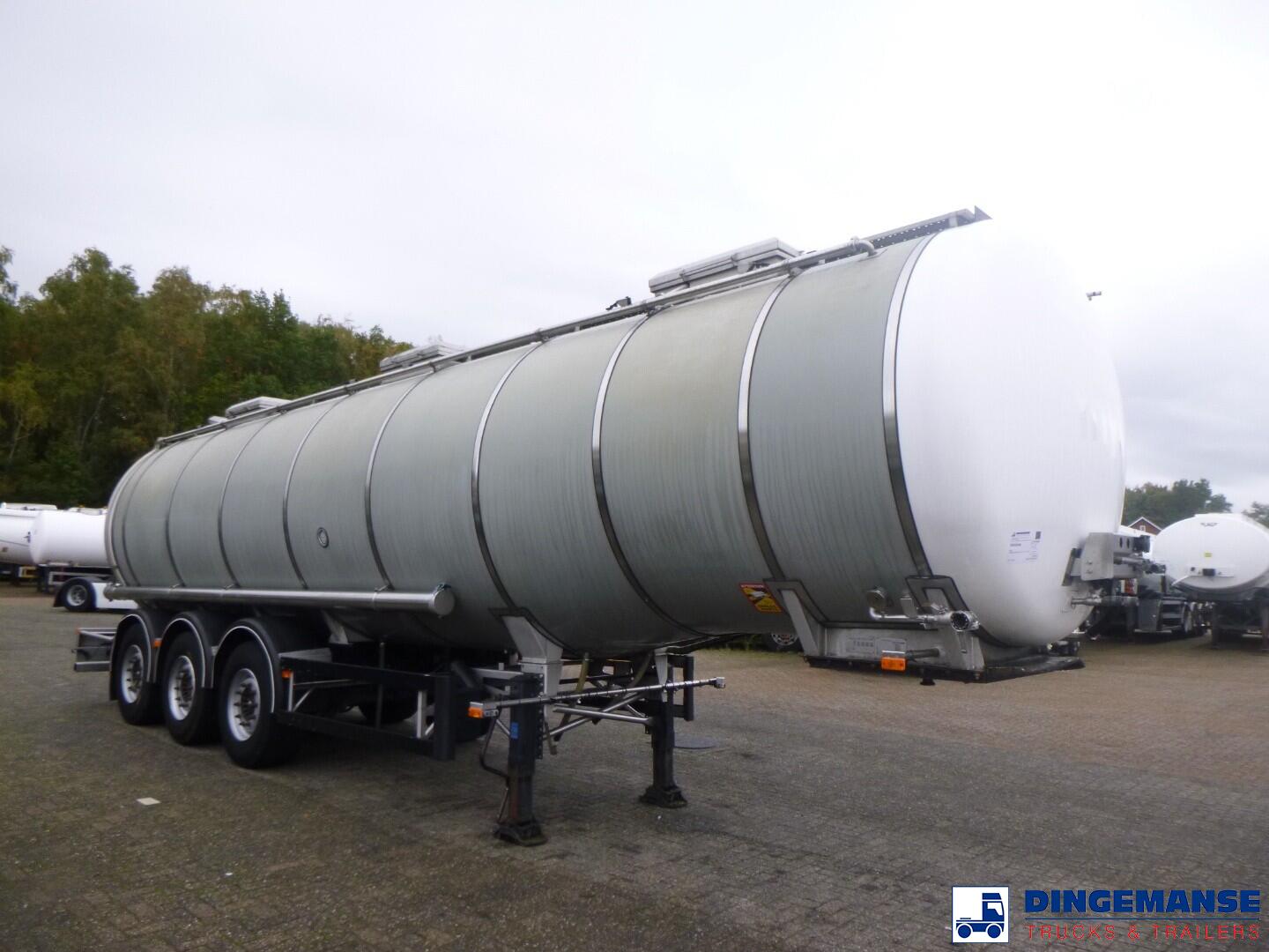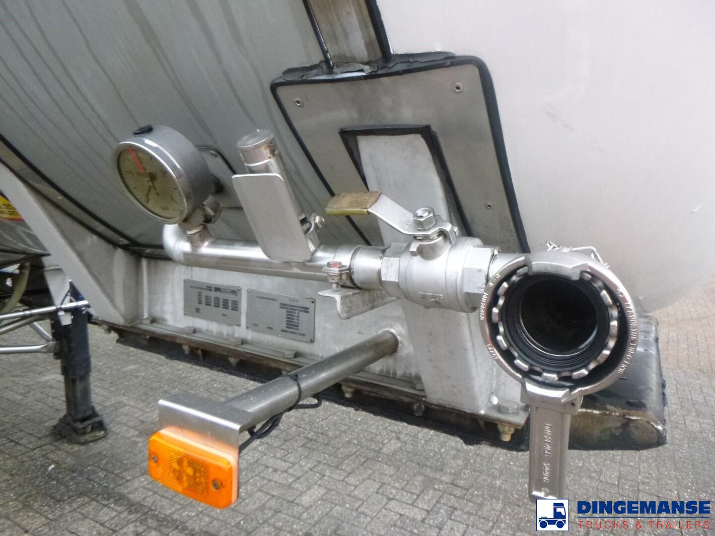Insulated stainless steel Food tank, Capacity 35000 liters, 1 Compartment, Year of construction 2002, Test pressure 3.0 bar, Max working pressure 2.0 bar, Tank material code 1.4404, Steam heating, Air suspension, Saf axles, Disc brakes, ABS, Shipment dimensions 1120x250x360 cm.