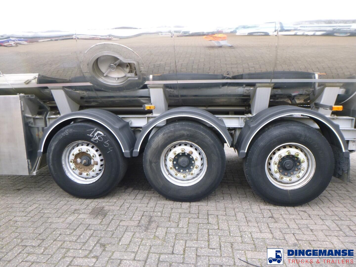 Insulated stainless steel food (milk) tank, Capacity 29000 liters, 1 Compartment, Year of construction 2014, Hydraulic pump, Hose reel, Internal cleaning system, Air suspension, Lift axle, Steering axle, Mercedes axles, Disc brakes, ABS, Shipment dimensions 1000x250x350 cm