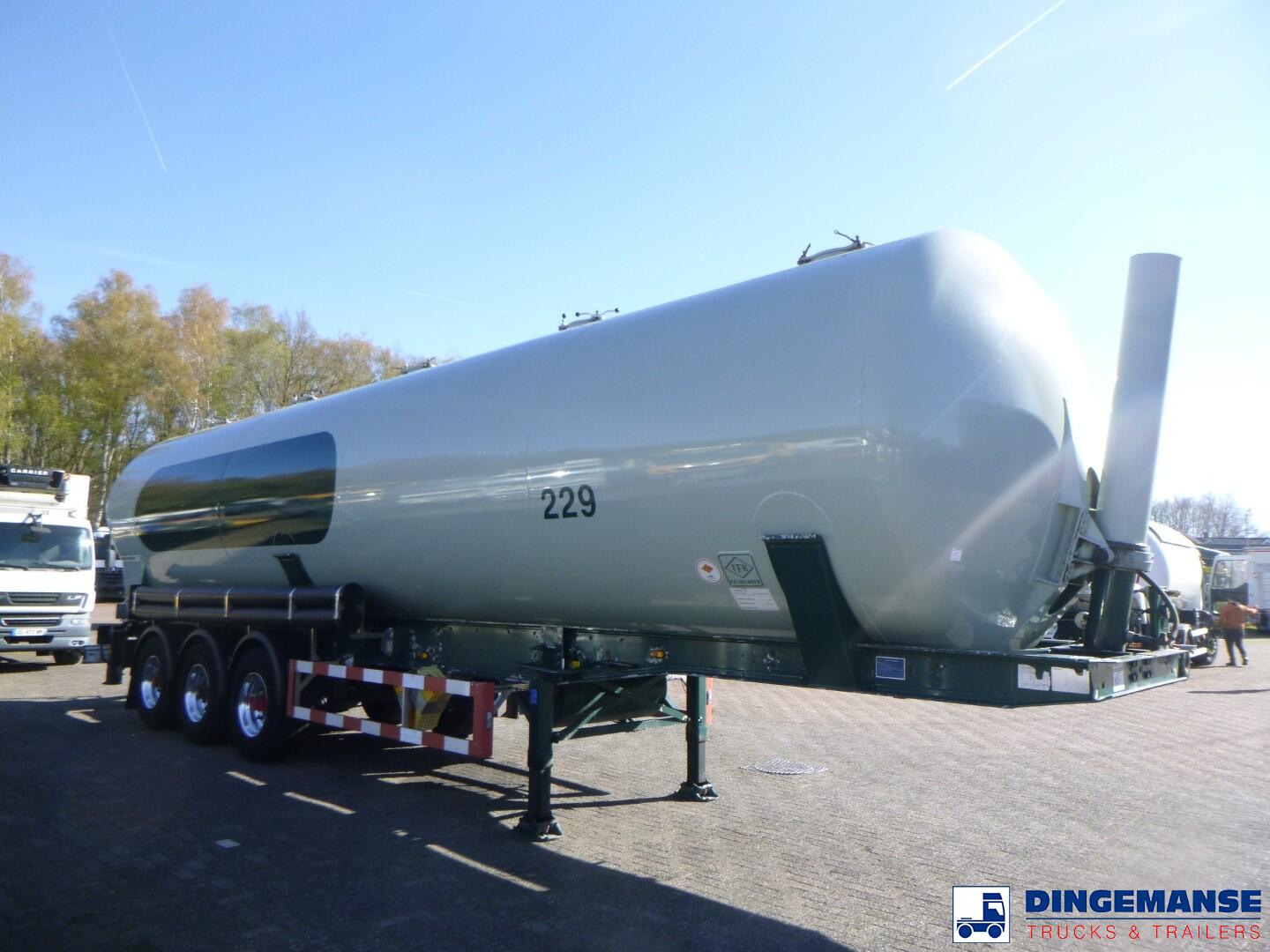 Aluminium powder tank with stand alone tipping system, Capacity 60000 litres, 1 Compartment, Test pressure 3.0 bar, Max working pressure 2.0 bar, ABS, Air suspension, Disc brakes, BPW Eco Plus axles, Alloy wheels, Shipment dimensions 1310x250x380