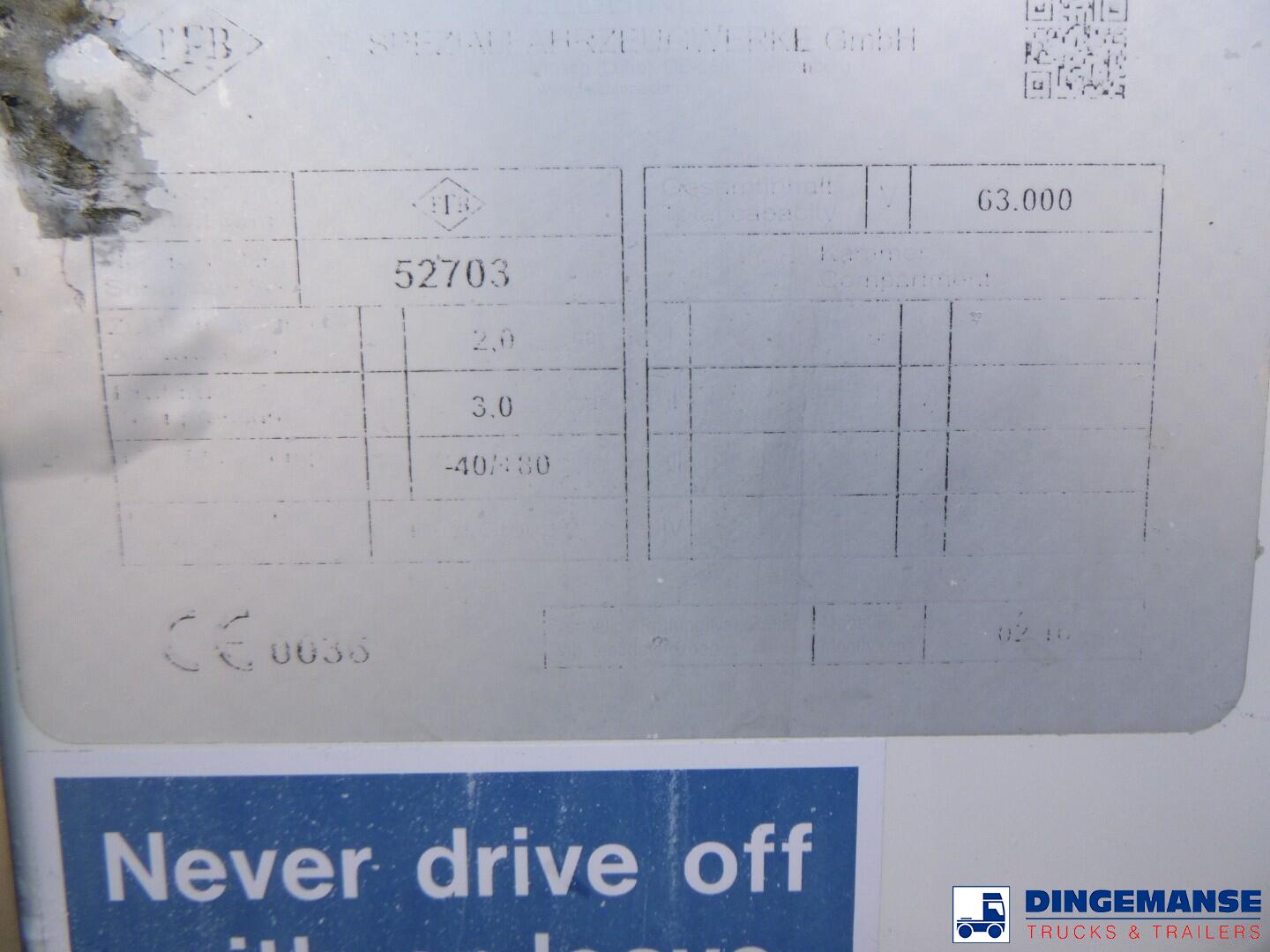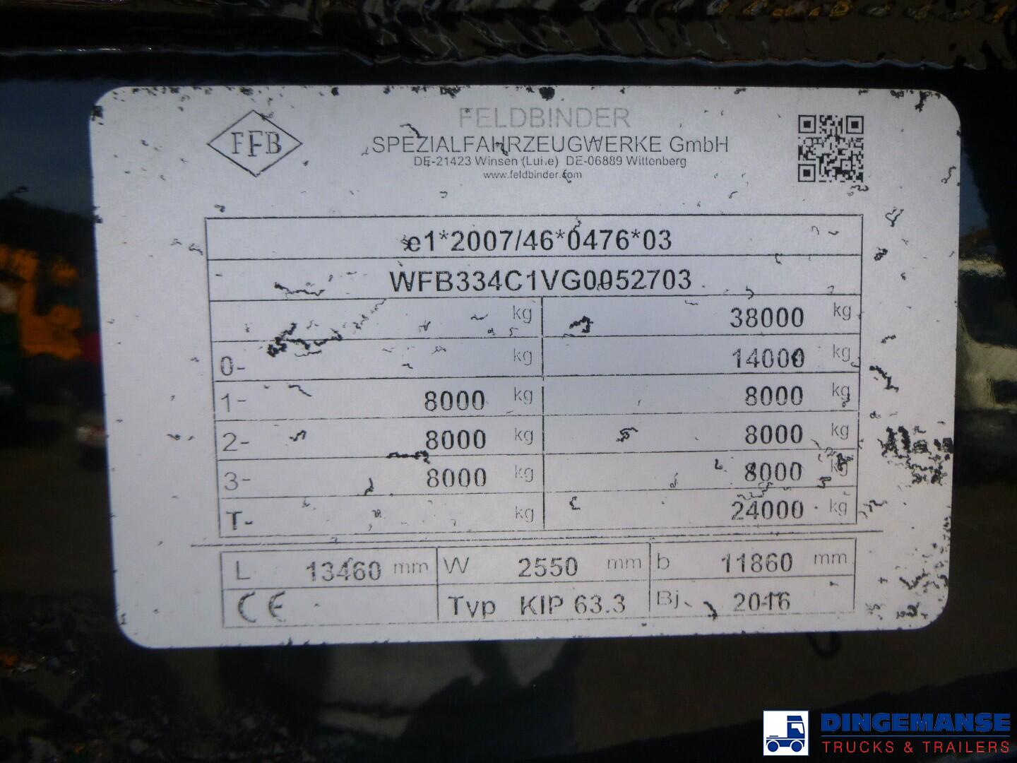 Feldbinder aluminium tipping powder tank, Capacity 63000 liters, 1 Compartment, Test pressure 3.0 bar, Max working pressure 2.0 bar, Year of construction 2016, Air suspension, Drum brakes, BPW axles, Alloy wheels, ABS, Shipment dimensions 1350x250x360 cm