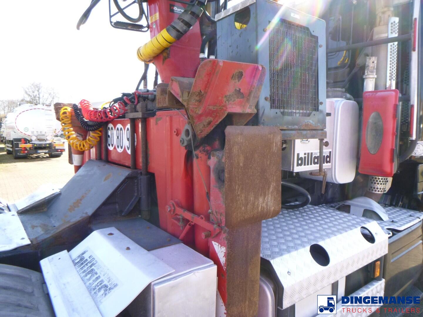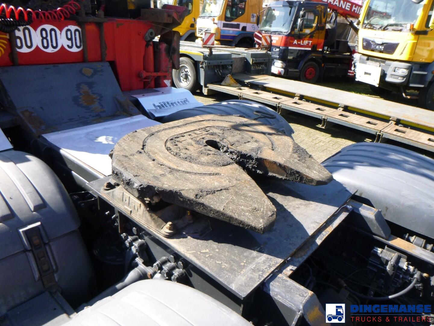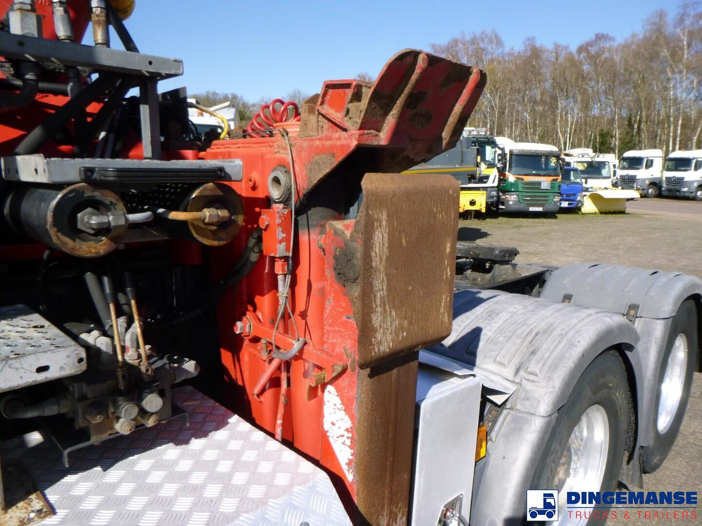 Jonsered J2850 S91 loading crane, Year of construction 2016, 1 Hydraulic extension, 2 support legs, Rotator, Max reach 9.11 meters, Outreach - lifting capacity: 3,0 m - 7100 kg 4,0m - 6200kg, 5,0m - 5100kg, 6,0 m - 4300 kg, 7,0m - 3750 kg, 8,0m - 3250 kg, 8,8m - 2950 kg, Manual controls // Truck 6x4, Euro 6, Adblue, Semi-automatic gearbox ( 3 pedals), Steel front suspension, Air rear suspension, Diff lock, 2 inch 5th wheel, Sleep cabin, Airconditioning, Night heater, Night airconditioning, Coolbox, Digital tachograph, 1 Bed, Shipment dimensions 780x250x400 cm