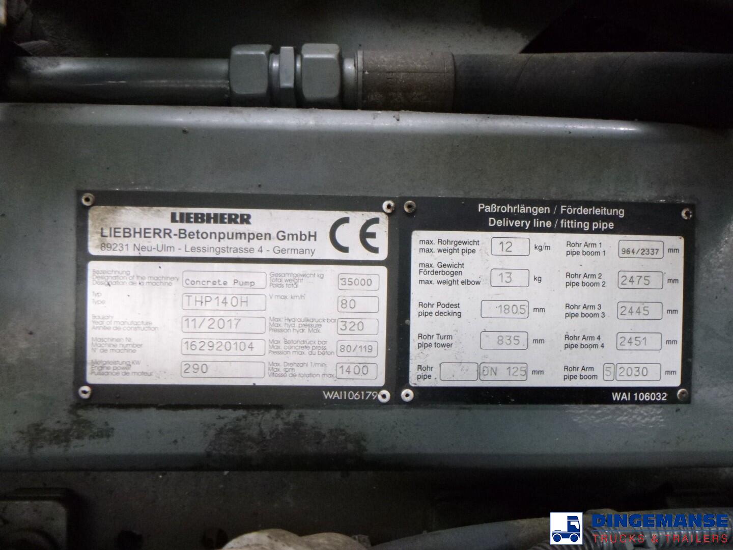 NON DUTY FREE VEHICLE, REQUIRES CUSTOMS CLEARANCE // Liebherr concrete pump type 35Z5, Year of construction 2017, Pipe diameter 12,5 cm, Max hydraulic pressure 340 bar, Max concrete pressure 85 bar, 4 support legs, radio controll, 35 XXT concrete boom, Max horizontal reach 30,7 meters, Max vertical reach 34,7 meters, End hose lenght 4 meters // Truck 8x4, Euro 6, Adblue, Automatic gearbox, Diff lock, Full steel suspension, Day cabin, Air conditioning, Digital tachograph, Shipment dimensions 1030x255x400 cm