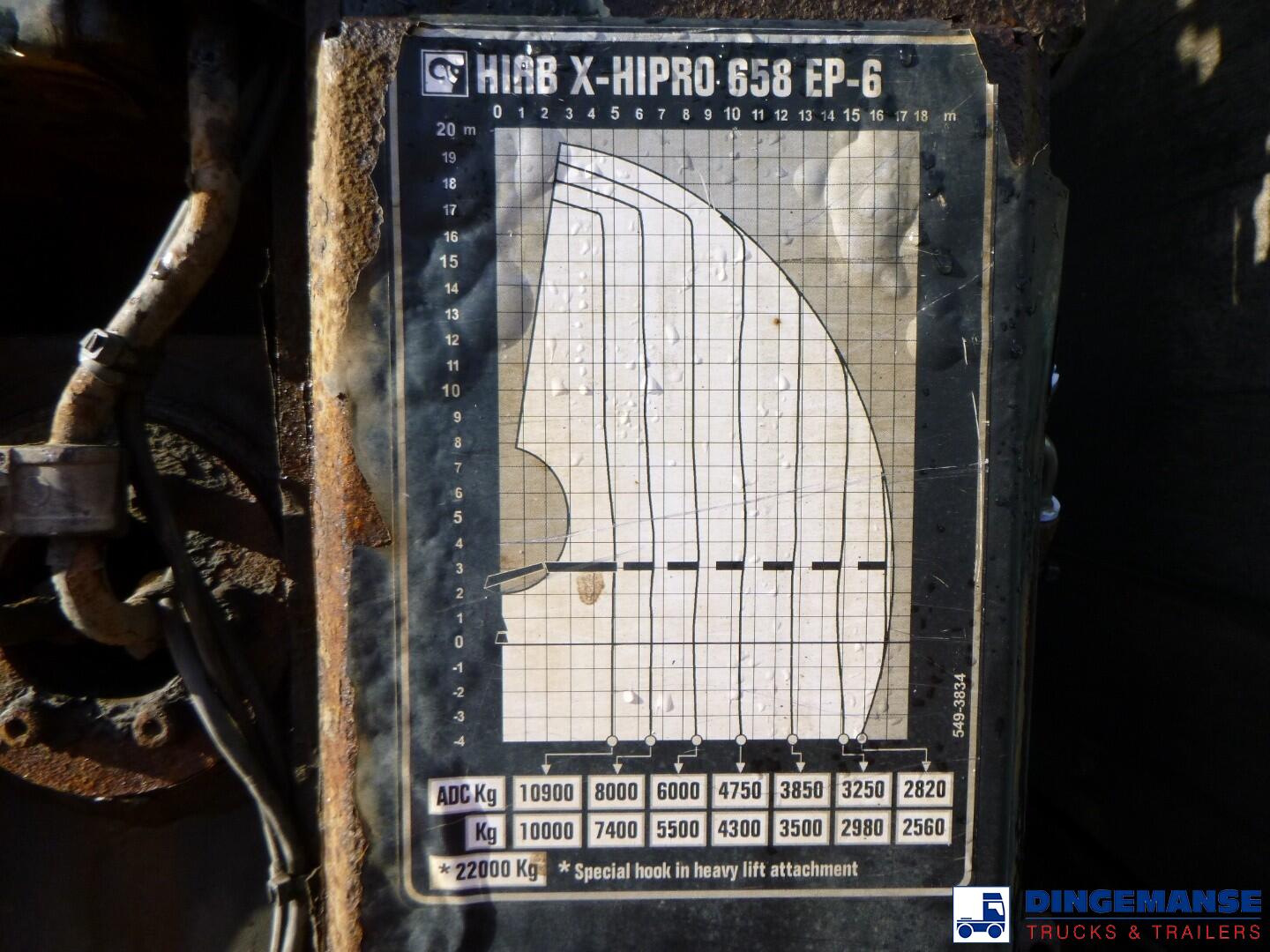 NON DUTY FREE VEHICLE, REQUIRES CUSTOMS CLEARANCE // RIGHT-HAND-DRIVE // Hiab X-Hipro EP 6 loading crane, Year of construcion 2016, 6 Hydraulic extensions, Max reach 16.90 meter, Loading capacity 10000 at 5.10 meters, 2560 at 16.90 meters, Hook, Radio control, 4 support legs // Truck 8x2, Euro 6, Adblue, Manual gearbox with 8 gears, Diff lock Steel front suspension, Air rear suspension, VBG hitch, platform dimensions 790x250 cm Loading height 135 cm, Twistlocks for 20 ft, Sleep cabin, 1 bed, Air conditioning, Digital tachograph, RIGHT-HAND DRIVE, Shipment dimensions 1220x250x385 cm