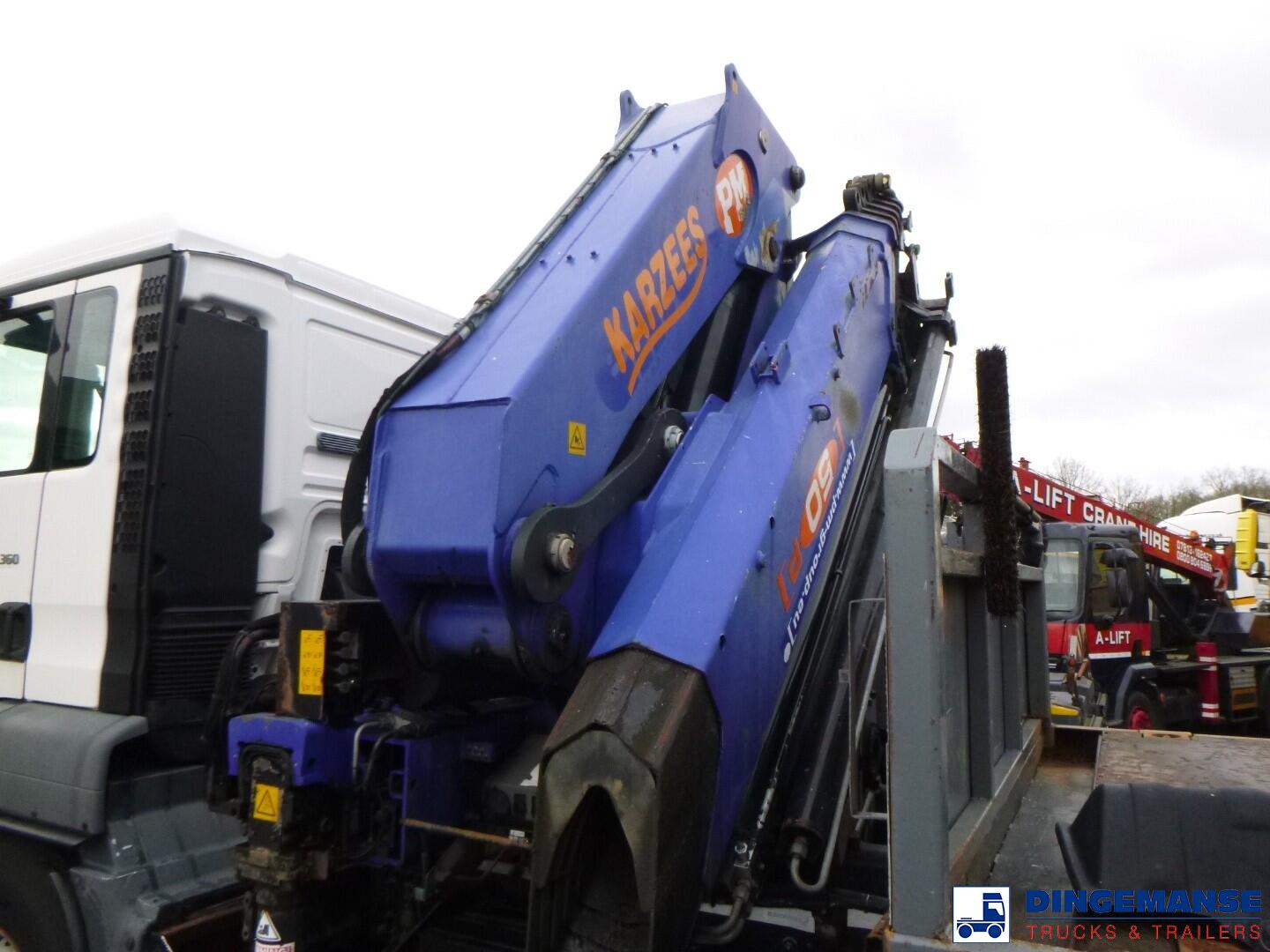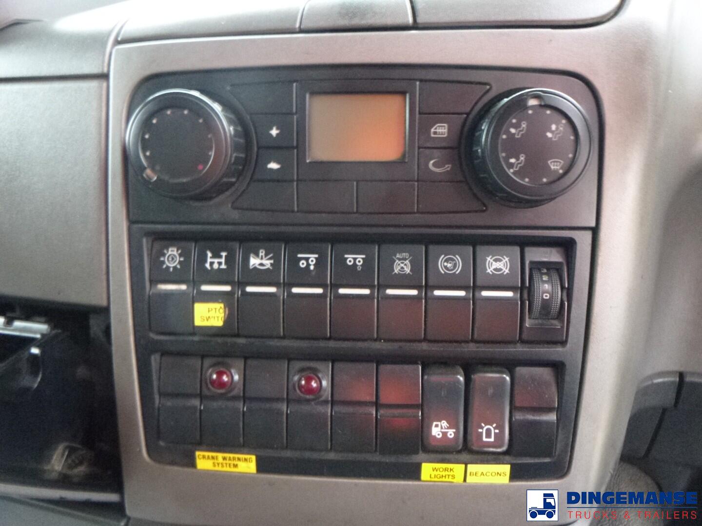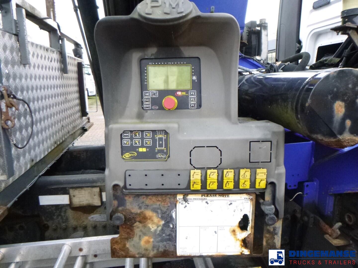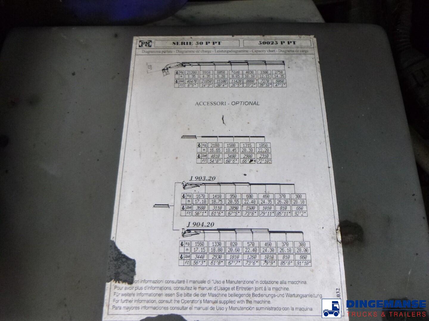 NON-DUTY FREE VEHICLE, REQUIRES CUSTOMS CLEARANCE // RIGHT-HAND DRIVE // PM 50P loading crane, 5 Hydraulic extensions, Max. horizontal reach 14,45 m, Max. vertical reach 18,40 m, Max. lifting capacity 9910 kg at 4 m, 2750 kg at 14 m, 4 Support legs, Radio remote control, Truck 6x2, Steel suspension front / Air suspension rear, Rear axle lift, Automatic gearbox (2 pedals), Euro 5, AdBlue, Twistlocks for 20 ft container, Platform dimensions 765x250 cm, Headboard height 80 cm, Platform floor height 120 cm, Day cabin, Air conditioning, Shipment dimensions1180x250x380 cm