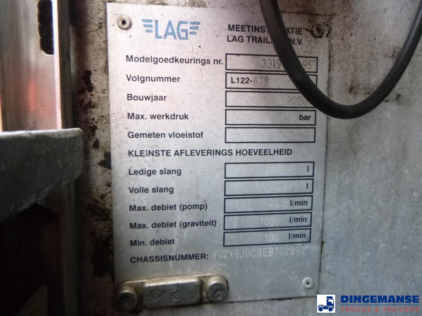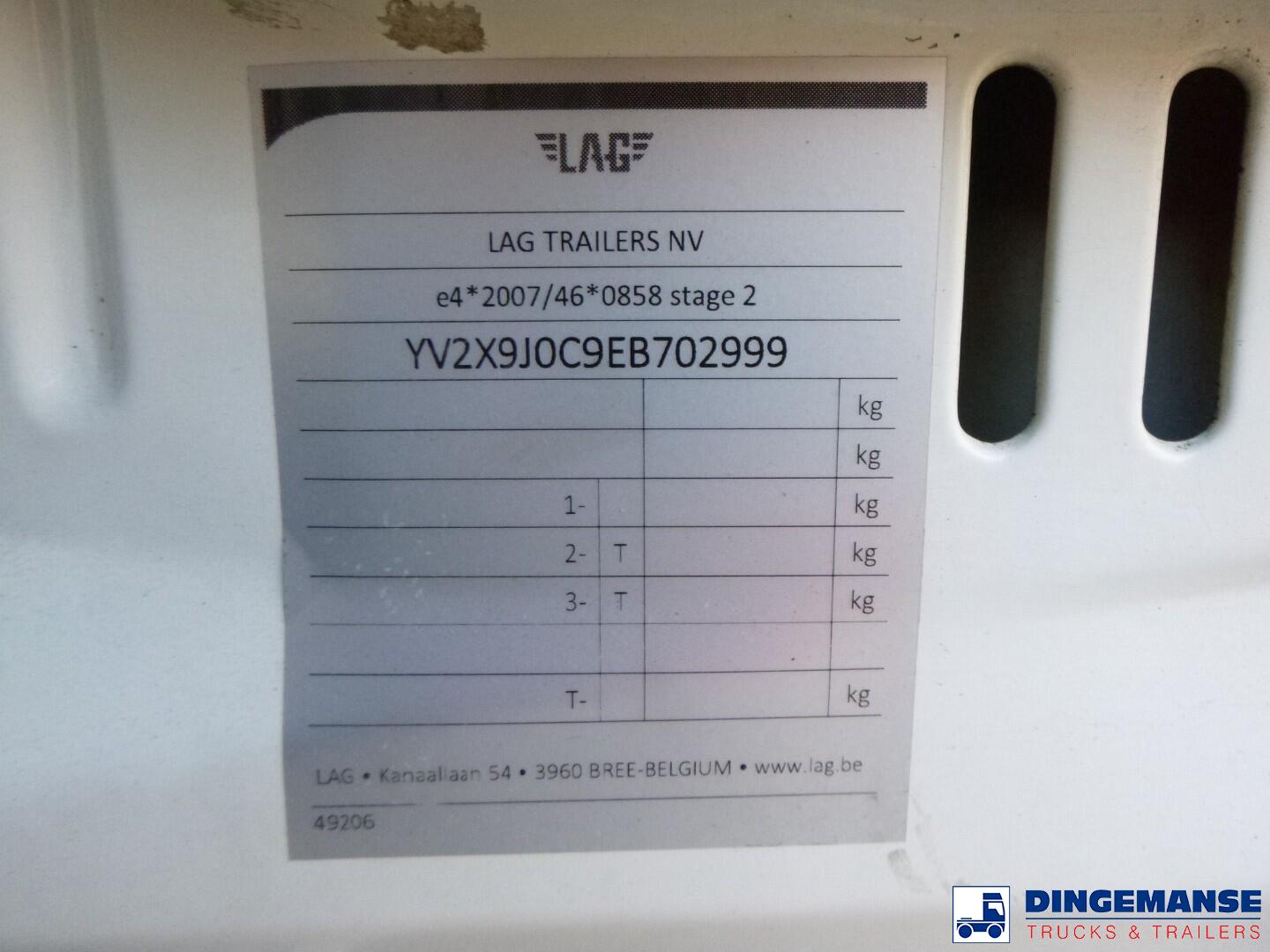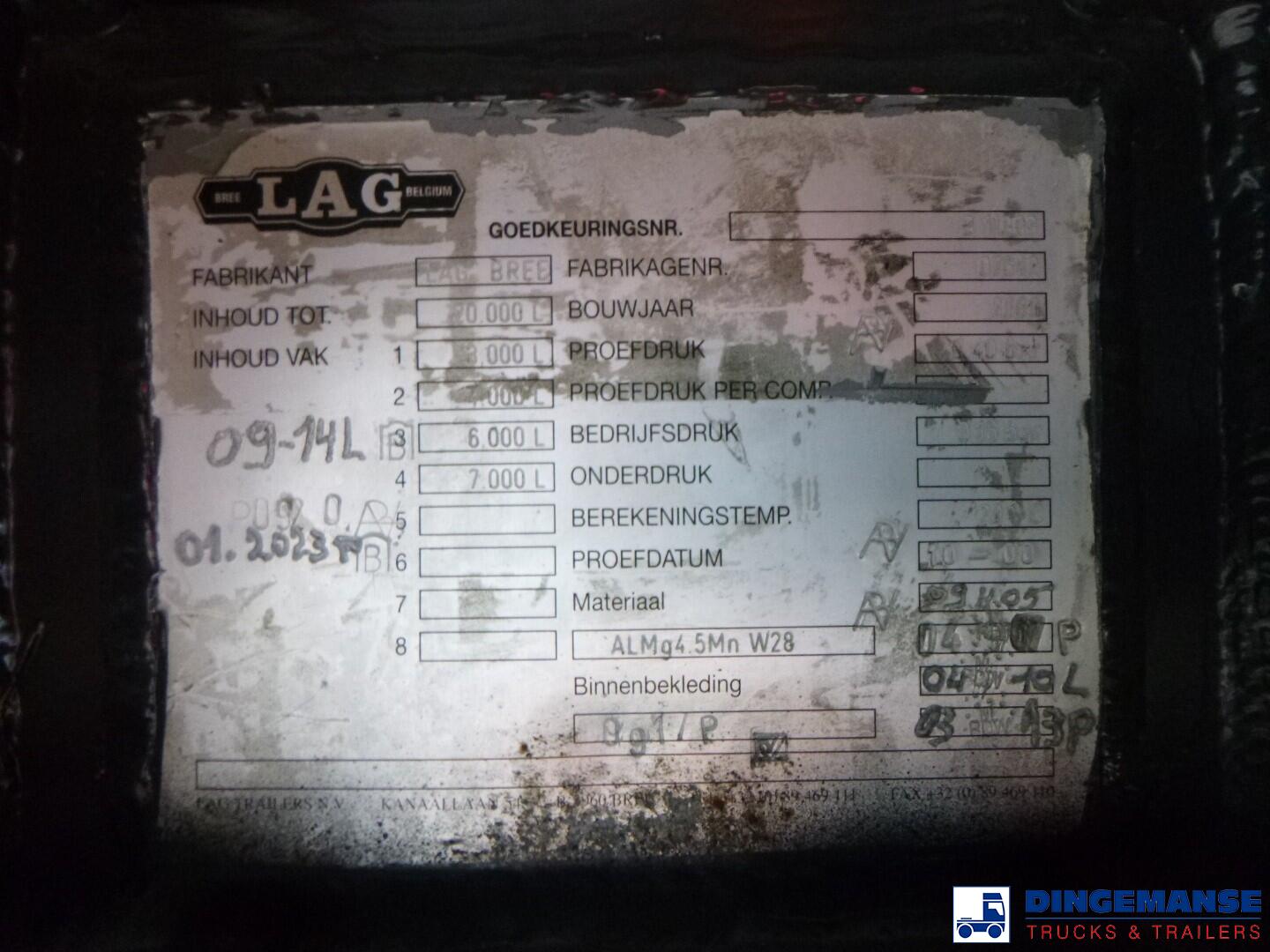 L.A.G. aluminium fuel tank, Capacity 20000 liters, 4 Compartments (3000;4000;6000;7000 liters), Year of construction 2000, Test pressure 0.40 bar, Max working pressure 0.15 bar, Hydaulic discharge pump, Digital counter, Vapour recovery, Overload sensor, Hose reel // Truck 6x2, Euro 6, Adblue, Automatic gearbox, Diff lock, Steel front suspension, Air rear suspension, Lift and steering axle, Sleep cabin, 1 bed, Airconditioning, Night heater, Digital tachograph, Shipment dimensions 920x240x340 cm