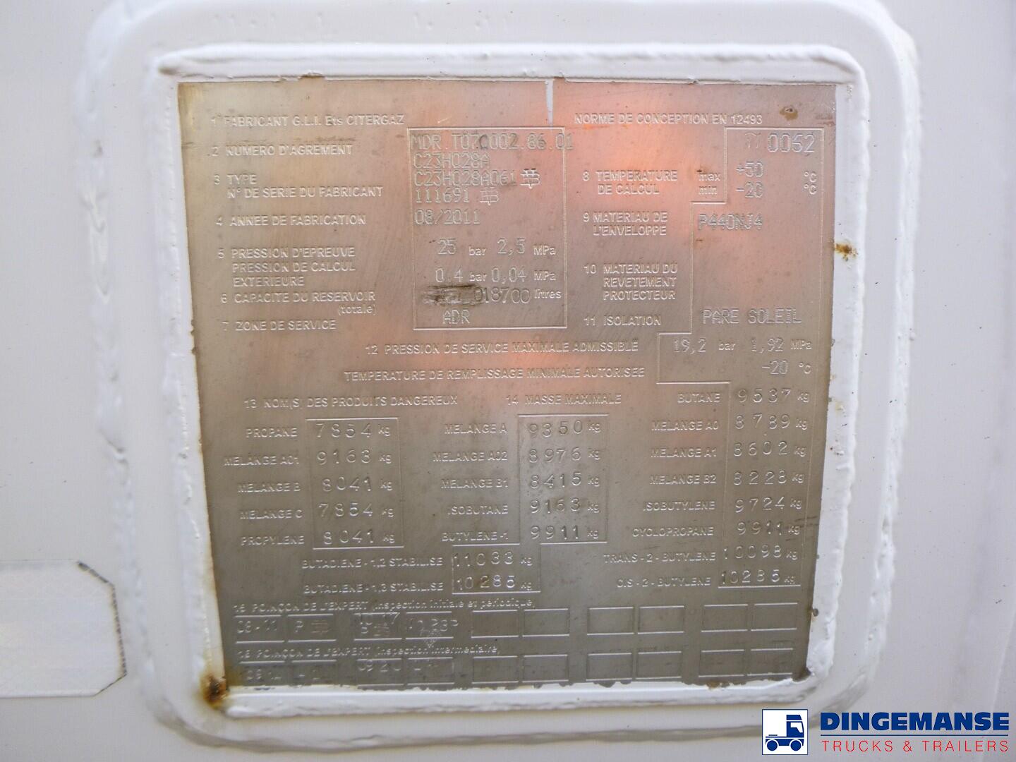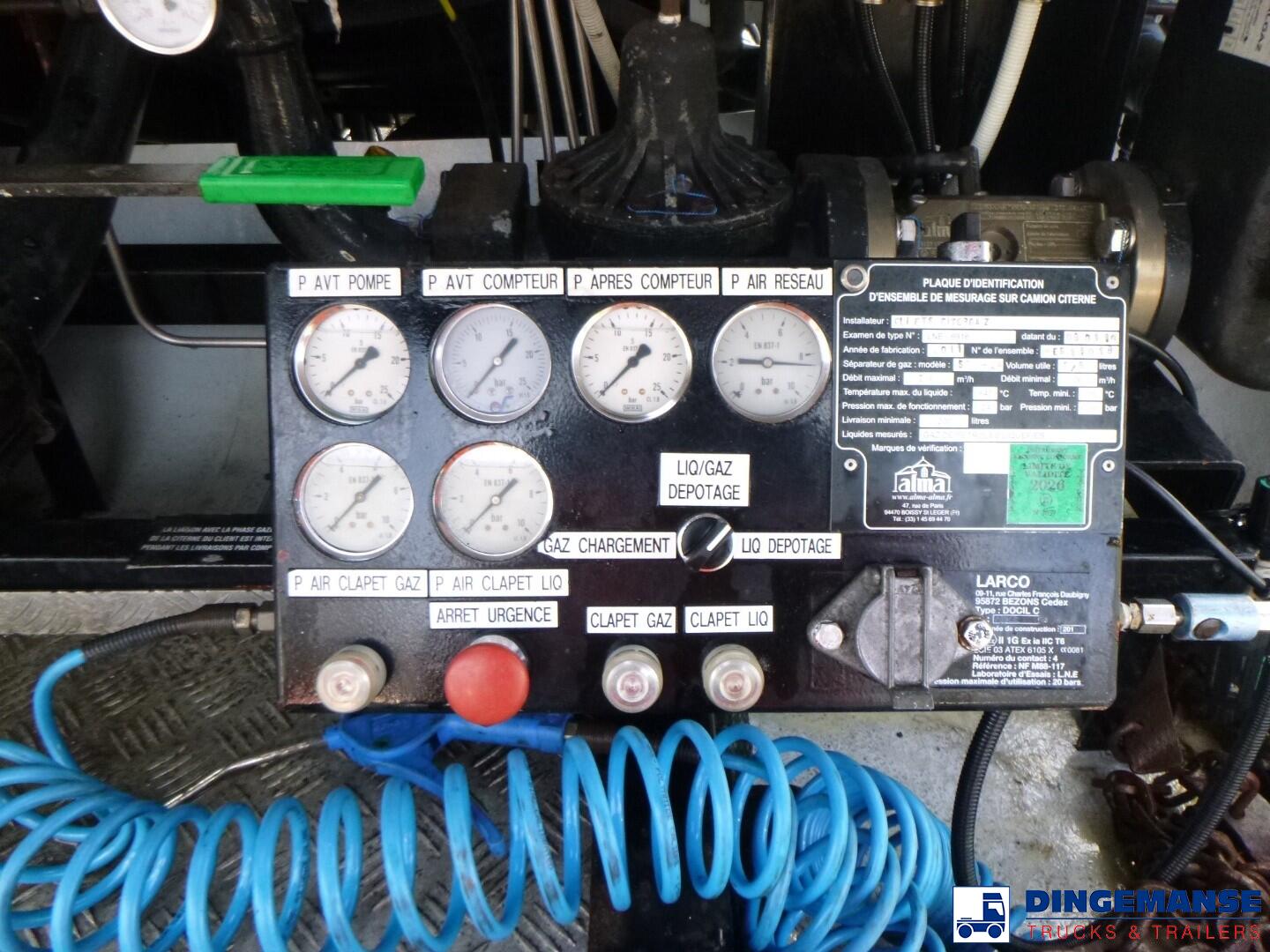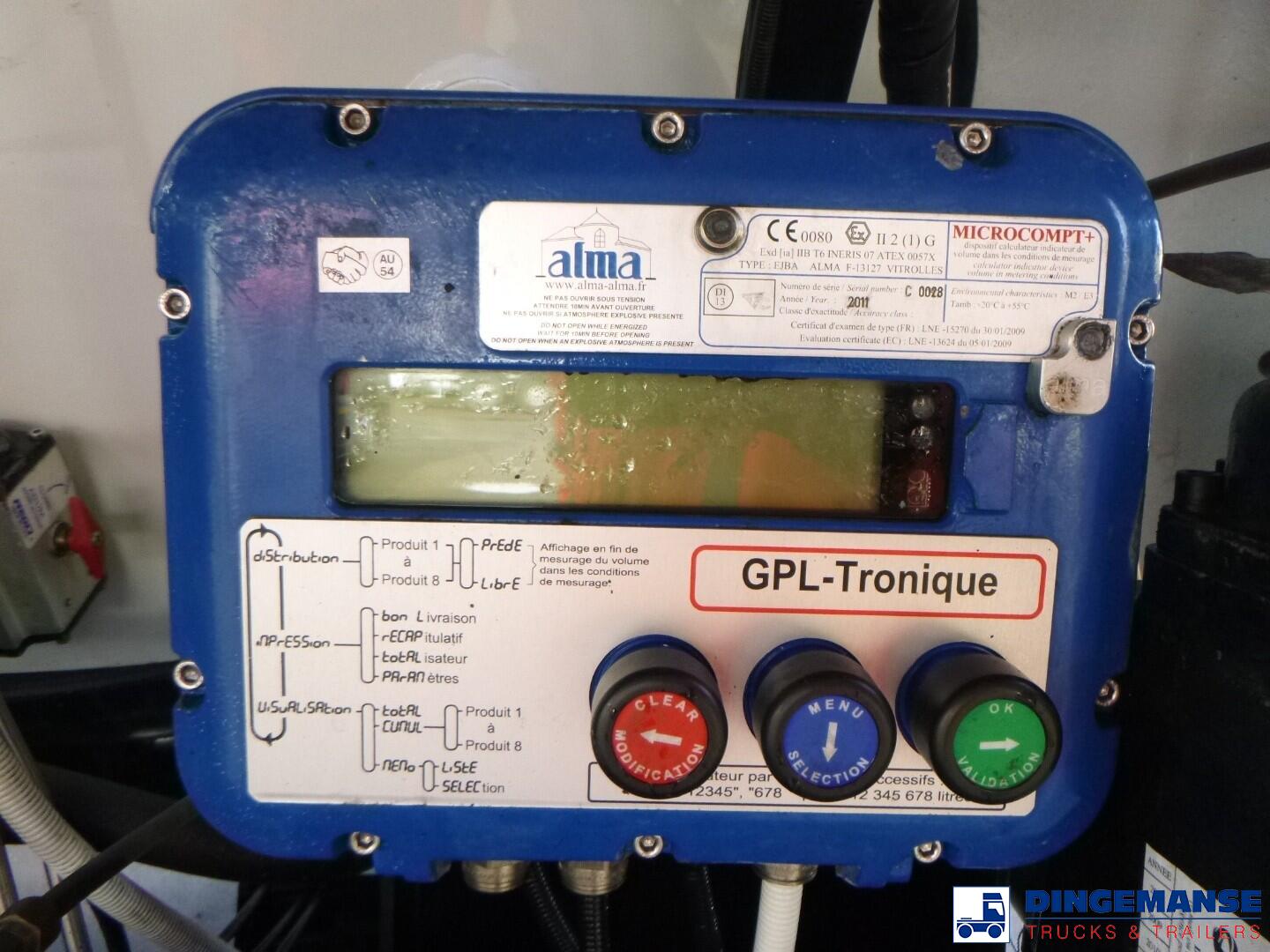 Citergaz steel LPG tank, Capacity 18700 liters, 1 Compartment, Hydraulic pump, Hose reel, Digital counter, Test pressure 25 bar, Max working pressure 19.2 bar, Tank material code P440NJ4, Year of construction 2011 // Truck 4x2, Euro 5, Adblue, Manual gearbox with 8 gears, Telma retarder, Diff lock, Steel front suspension, Air rear suspension, Dxi engine, Day cabin, Airconditioning, Digital tachograph, Shipment dimensions 755x250x350 cm